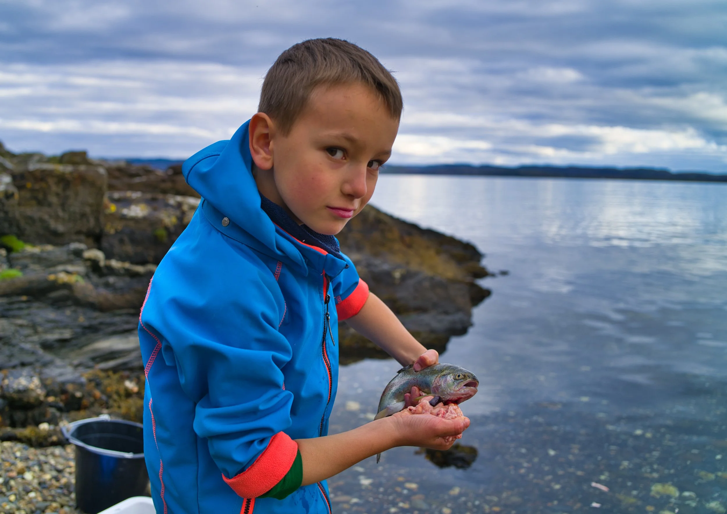 Next, we had to clean the fish we had caught. Together, we learned how to gut it and then Nikolai got the chance to practise his new skill.