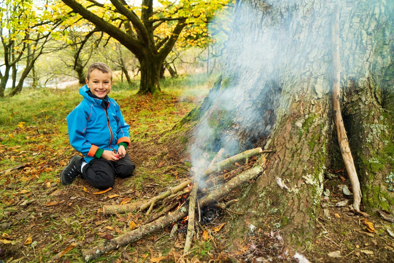 On the shore, we radioed John for our next steps. He told Nikolai to collect seaweed and mussels for dinner. Once that was done, John gave us directions and Nikolai had to use a compass to guide us to a clearing. When we arrived, John was there waiting for us prepared to give us our first lesson. John showed Nikolai how to start a fire with a fire steel and cotton wool, how to make a spark and feed it small twigs to get it started. Nikolai was so excited to learn this new bush skill and once the fire was lit I could see his face glowing with a sense of accomplishment.
